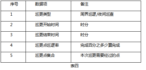 設(shè)定巡更計劃,所包含數(shù)據(jù)項見表四。